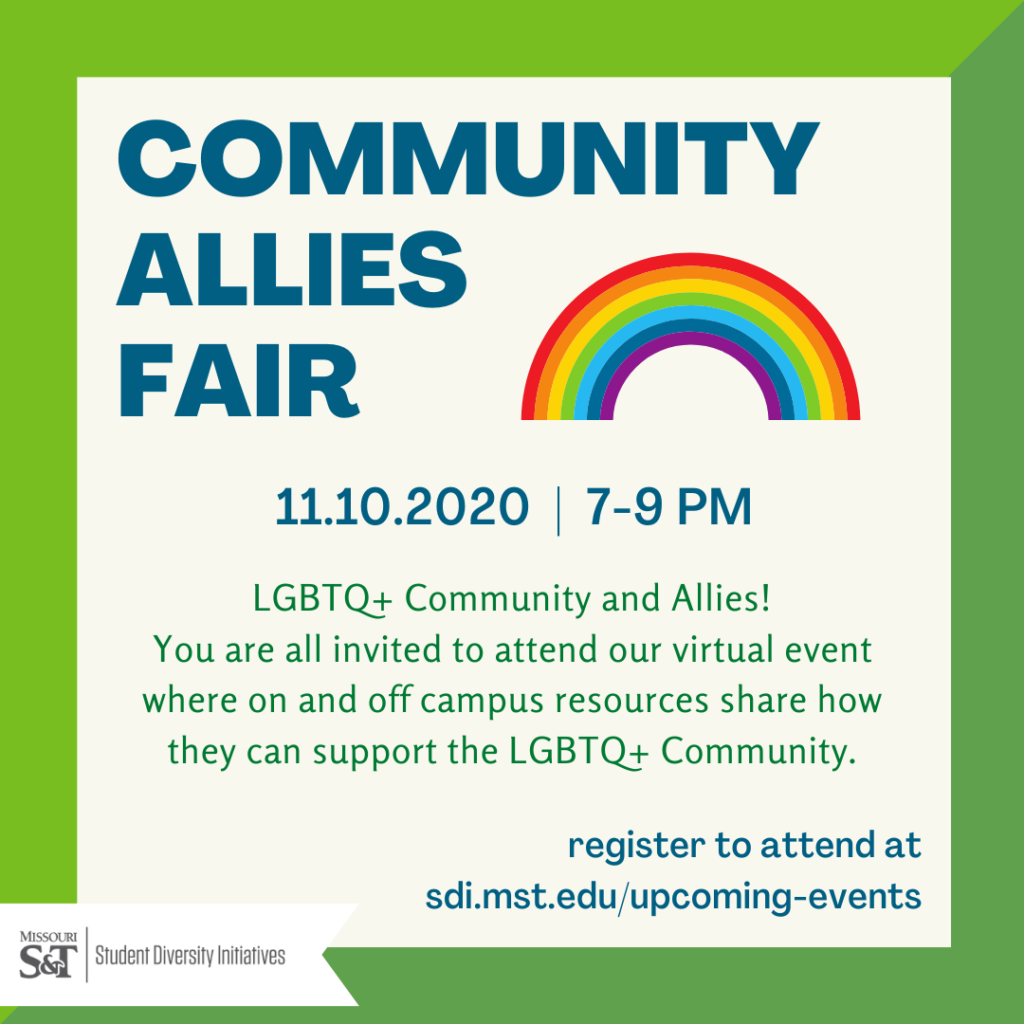 We are looking for resources to present at the second annual Community Allies Fair! Does your department or student group provide any type of services that the LGBTQ+ community could benefit from? Are you looking for ways to show the LGBTQ+ community that you are here to support them as a department? Then we would love to have you at this event where you can share your resources!