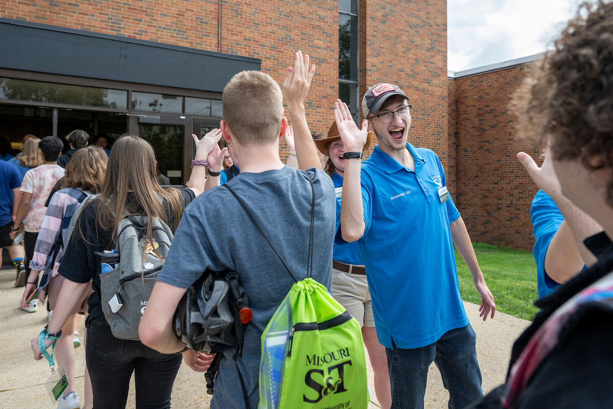 First-year students are greeted to convocation by residential life student staffers. Michael Pierce/Missouri S&T