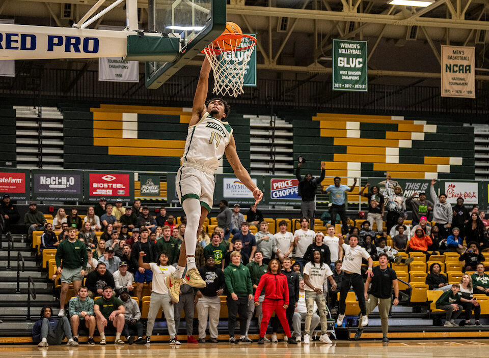 Lovell Williams, a senior studying mechanical engineering, dunks a basket during a game against Quincy University on Thursday, Nov. 30, 2023. Photo by Michael Pierce/Missouri S&T.