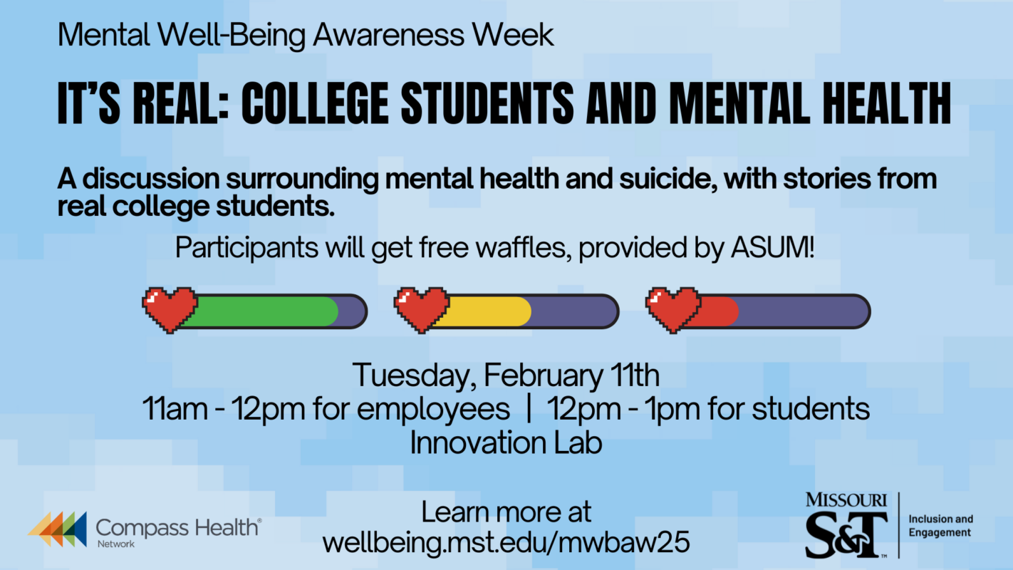 “It’s Real: College Students and Mental Health” is a discussion centered around mental health and suicide, with stories from real college students. The event will be held in the Innovation Lab forum, students are invited to attend from noon-1 p.m. on Feb.11.