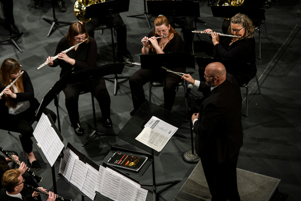 The S&T symphonic band, including members of the community, plays under the direction of Dr. David Samson at Leach Theatre on Sunday, February 27, 2022. Michael Pierce/Missouri S&T