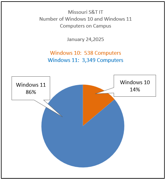 In 2023, S&T’s information technology team began focusing efforts on and communicating to employees about the transition to the Windows 11 operating system so campus computers comply with UM System information security policies and guidelines. This fall Microsoft will no longer support the Windows 10 operating system.