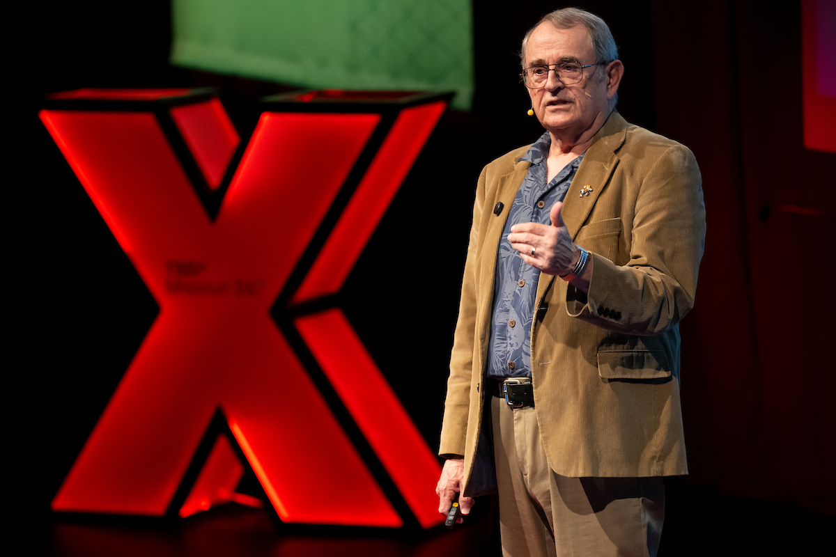 Dr. Larry Gragg, university historian and Curators’ Distinguished Teaching Professor emeritus of history and political science, presents a talk at the 2024 TEDxMissouri S&T event titled “STEM Alone Will Not Save Us.” Photo by Blaine Falkena/Missouri S&T.
