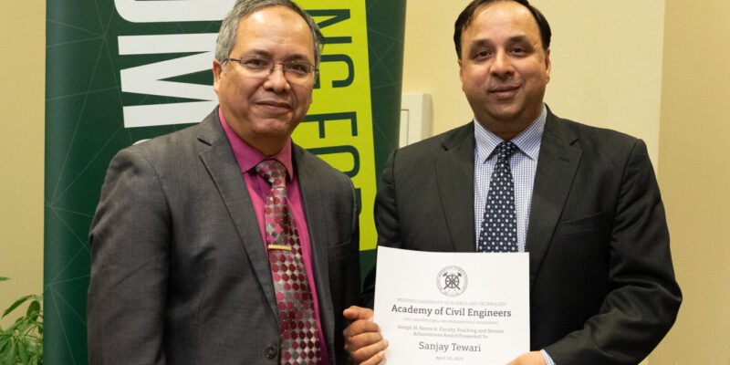 Dr. Sanjay Tewari, associate teaching professor of civil, architectural and environmental engineering, was honored with the Joseph H. Senne Jr. Faculty Teaching and Service Achievement Award by the S&T Academy of Civil Engineers.